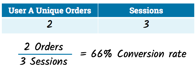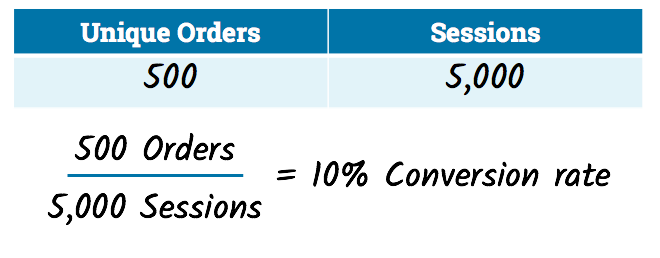 Чтобы узнать коэффициент конверсии для вашего сайта, вы просмотрите все уникальные заказы, разделенные на общее количество сеансов.
