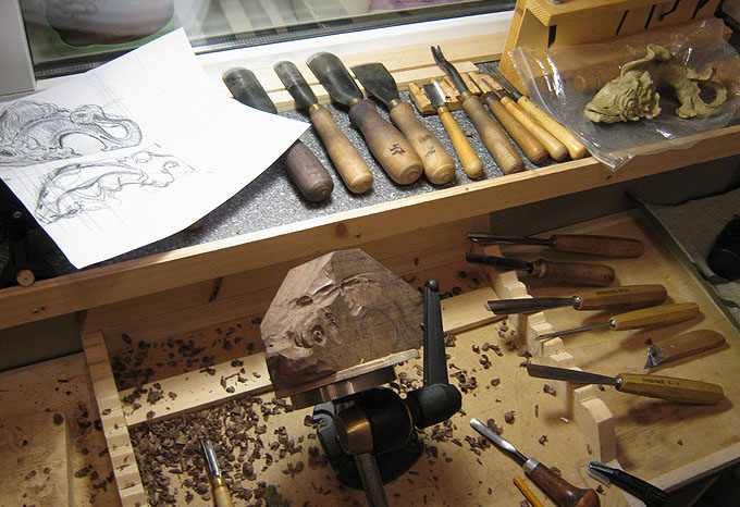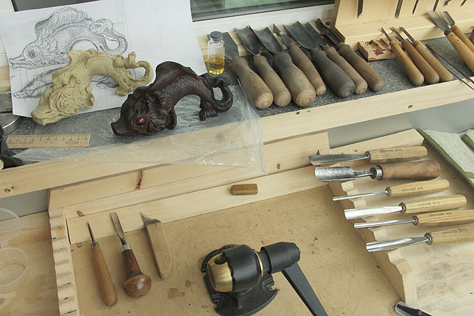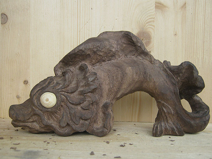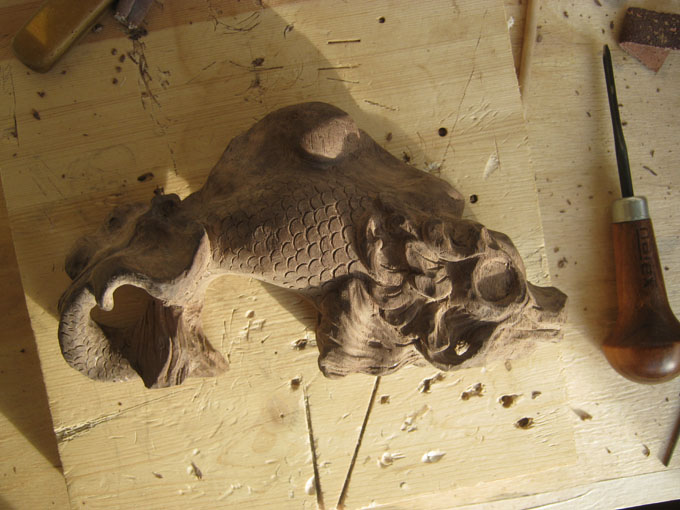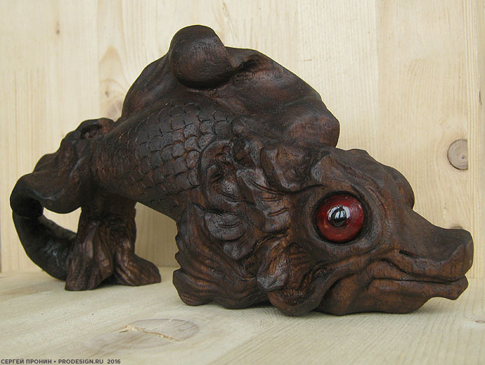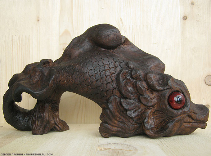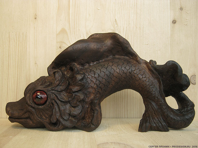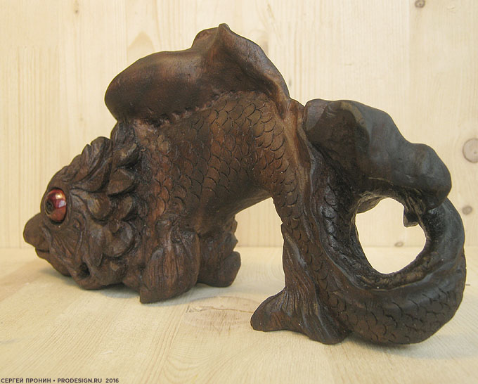 Впервые работал с тиком. Дерево очень красивого шоколадного оттенка, с очень подходящими моей «рыбе» темными полосами.