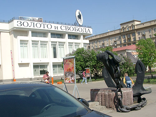 И стоит только для перехода улицы выбираться на большие московские артерии, как замелькают кретинские скамейки с перерезанными запястьями и прочие образчики гнилой уличной «коммуникации». Финишем всего этого креатива возвышается над «Новороссийским» Якорем стерлиговская вывеска. Все правильно.