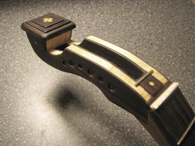 Выполнены последние работы: декор головки грифа, покрытие тунговым маслом, циклей немного сформована шейка грифа для большого пальца левой руки ну и всякие прочие мелочи. Из планируемого остались только колки (будут позже, красивые, с интарсией самшитом).