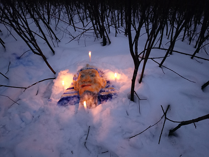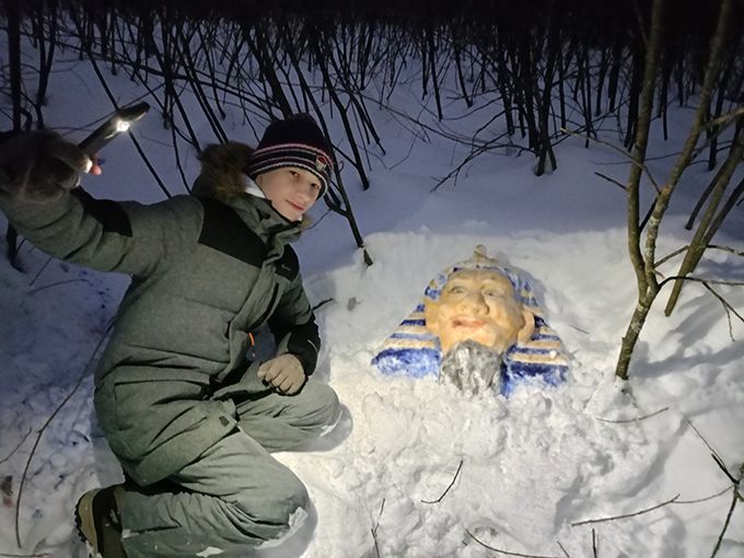Вызываем зиму! Уж скоро Новый год, а снега нет... публикую подборку наших снежных творений за 2023-24 гг. Чего мы только не изобрели этим февралем... Что по снегу можно рисовать красками, как по холсту! Мы провели освещение в крепость и вставили стекла из ледяной корки. Сделали плавильную печь из снега. Откопали маску древнего фараона Дедовского периода Морзеса 24-го... да много чего еще, смотрите.