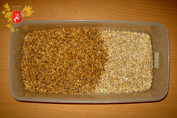 На фото ниже: перемолотый солод (слева темный — караред, светлый справа — карамюнх)