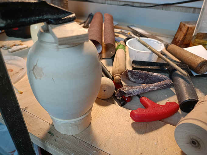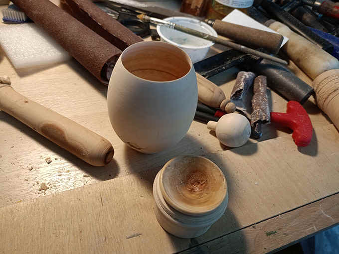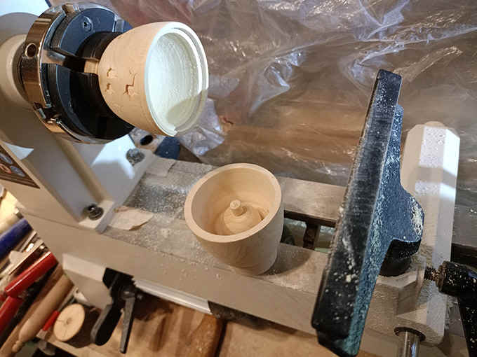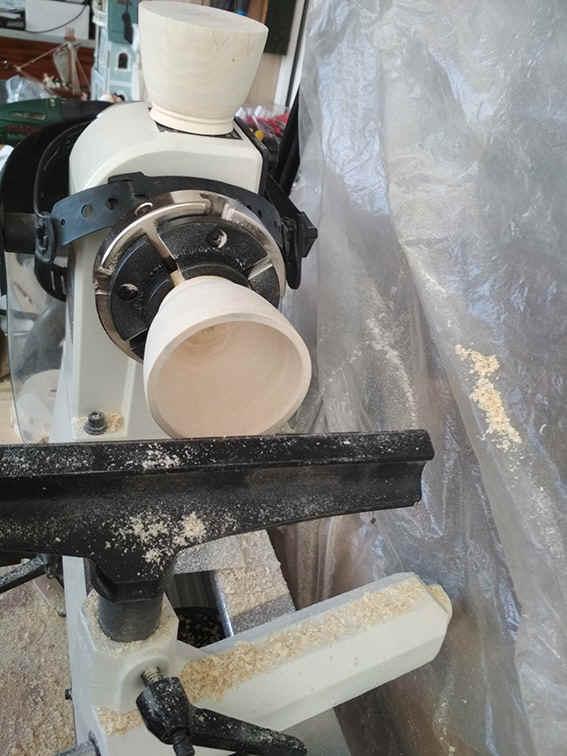 Первая чашка точилась чуть ли не три часа с напряженными руками, раз пять или шесть заготовку перекашивало в патроне и чудом не сломало, перепробовал все резцы. Вторая заготовка прошла без единого срыва за час, медленно, но с пониманием, третья за полчаса и четвертая минут за 20! Точил реером.