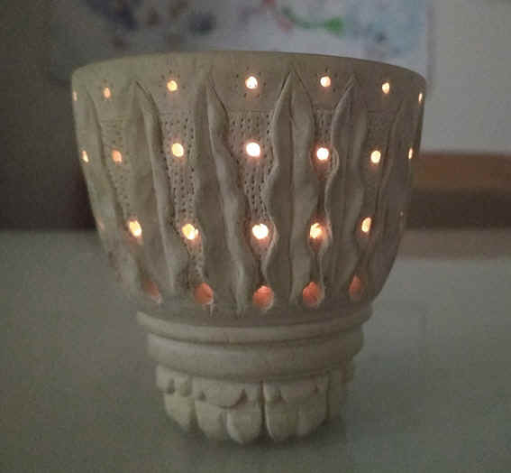 Сделал резьбу на цоколе и декорировал фон шилом.