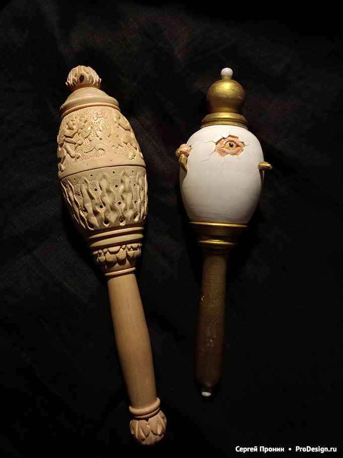 Липа, токарка, резьба. Со времени изготовления первой резной погремушки прошел год. Заготовленное «яйцо» второй пролежало и все полтора, и, видимо, пришло время вылупиться детенышу.