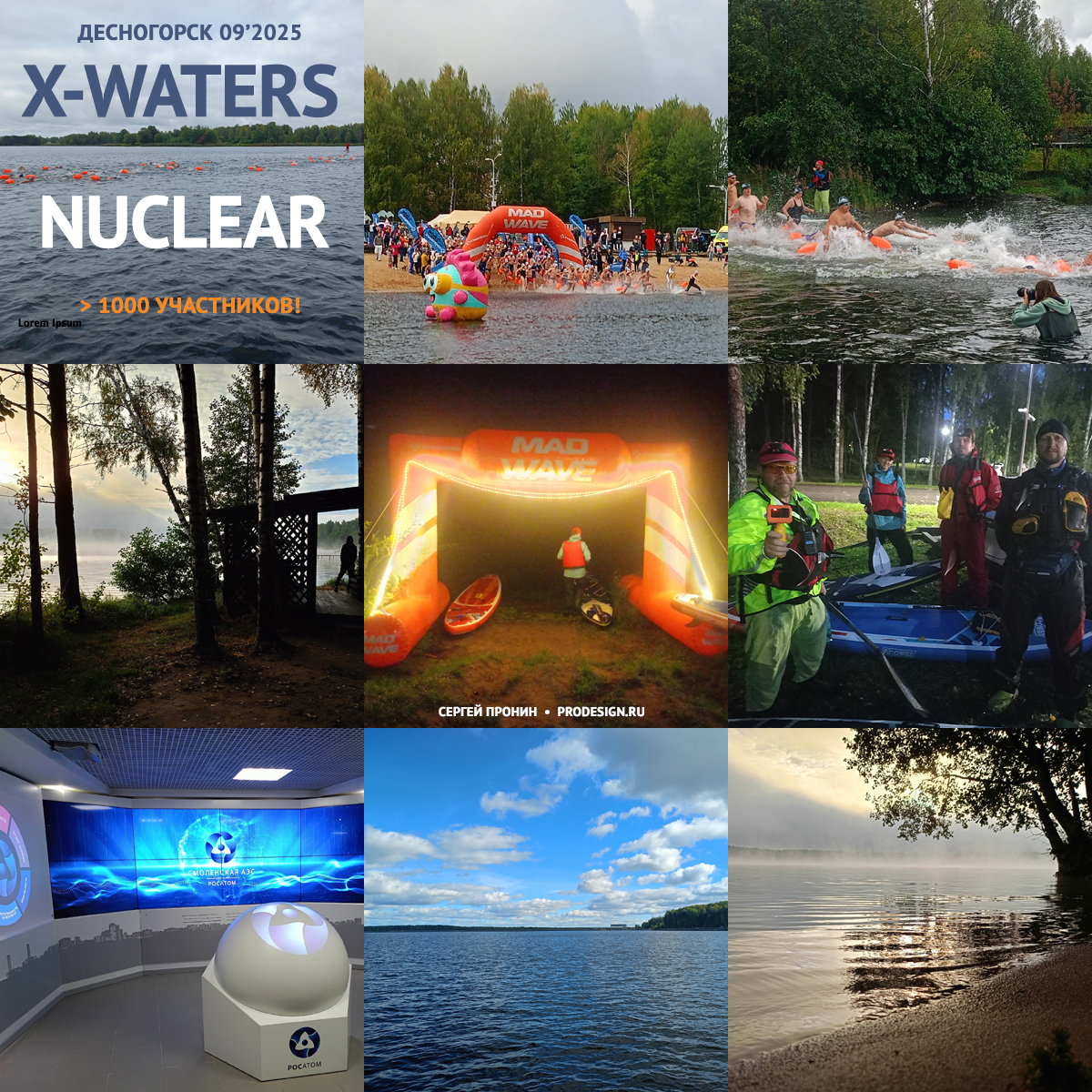 Эти выходные были в прямом смысле атомными! Пятый по счету масс-старт на открытой воде от X-Waters собрал в этот раз более 1000 участников на 10 разных дистанциях (от детских до 10 км). Как обычно, я выступал в составе пяти SUP, страхующих пловцов во время заплыва.