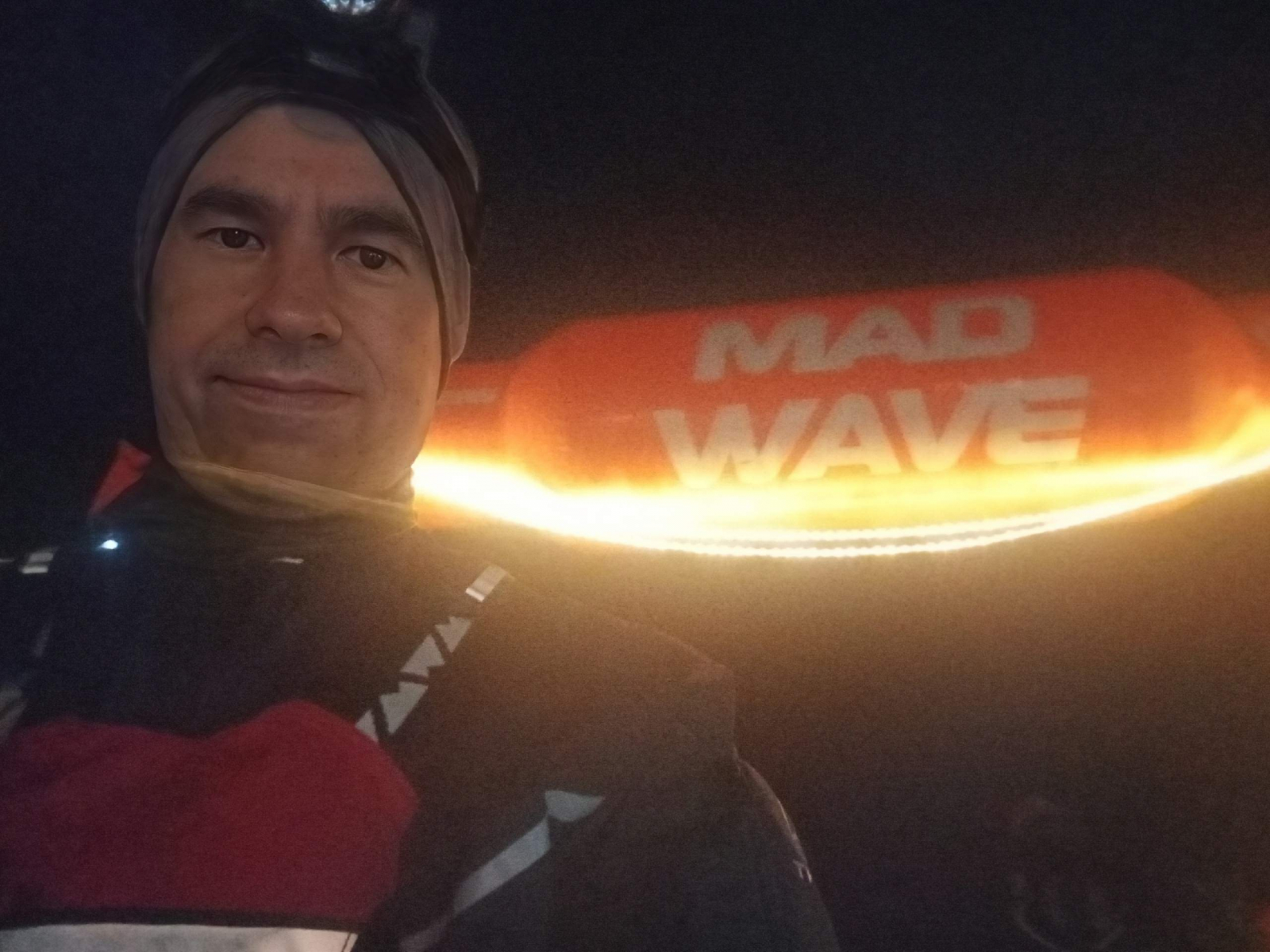В субботу сопровождали первый в стране ночной заплыв (750 м) — более 150 пловцов с розовыми светящимися поплавками стартовали в кромешной тьме, зрелище удивительное!