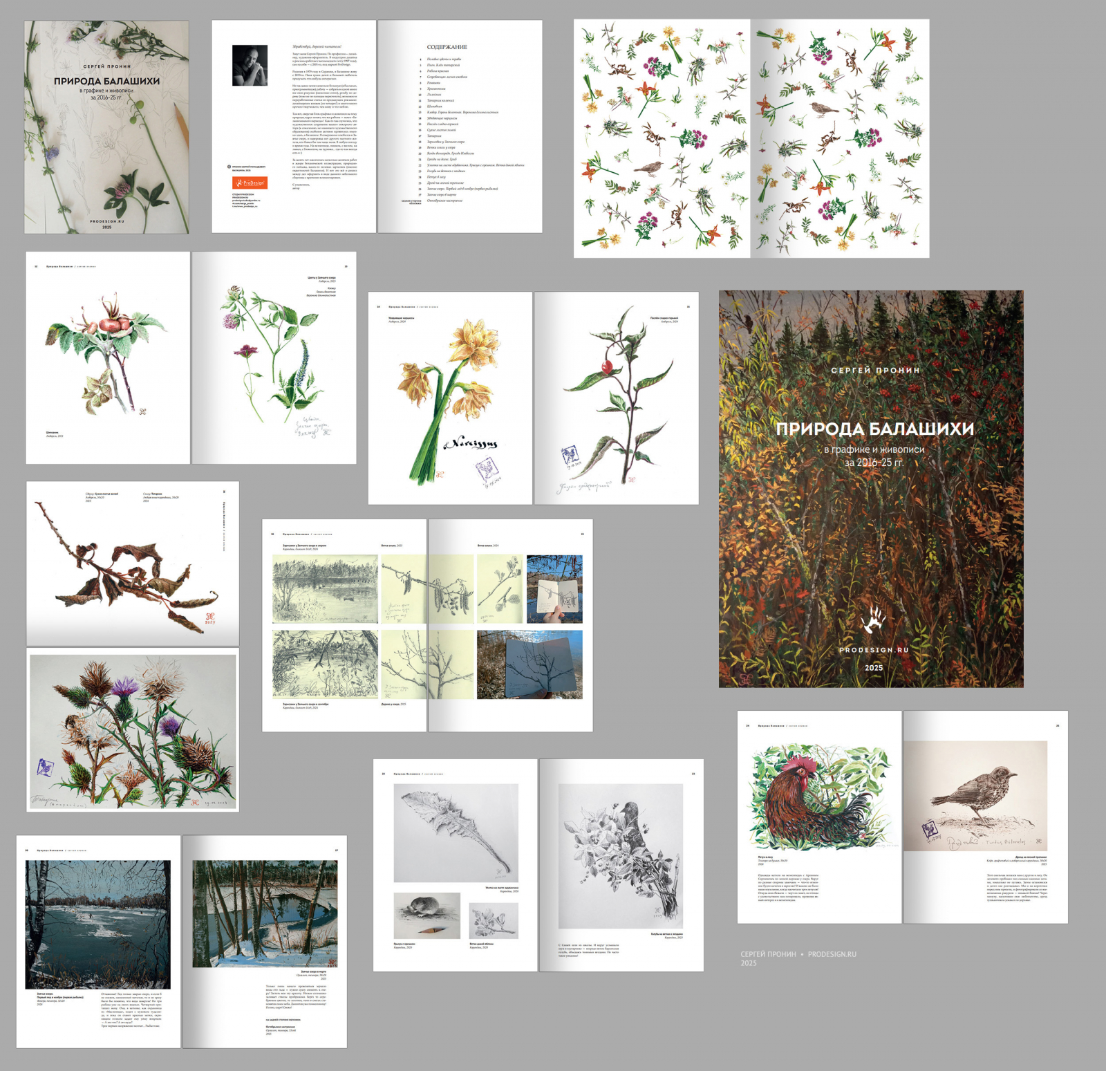 Пока перекапывал тонны материала для альбомища своего, неожиданно пришла мысль (и я ее реализовал в макете) — сделать сборник работ «Природа Балашихи» за 10 лет (с 2016 по 2025). Сборник небольшой — 28 страниц, 35 иллюстраций (акварель, темпера, карандаш) + краткие комментарии. Формат: 197х255.