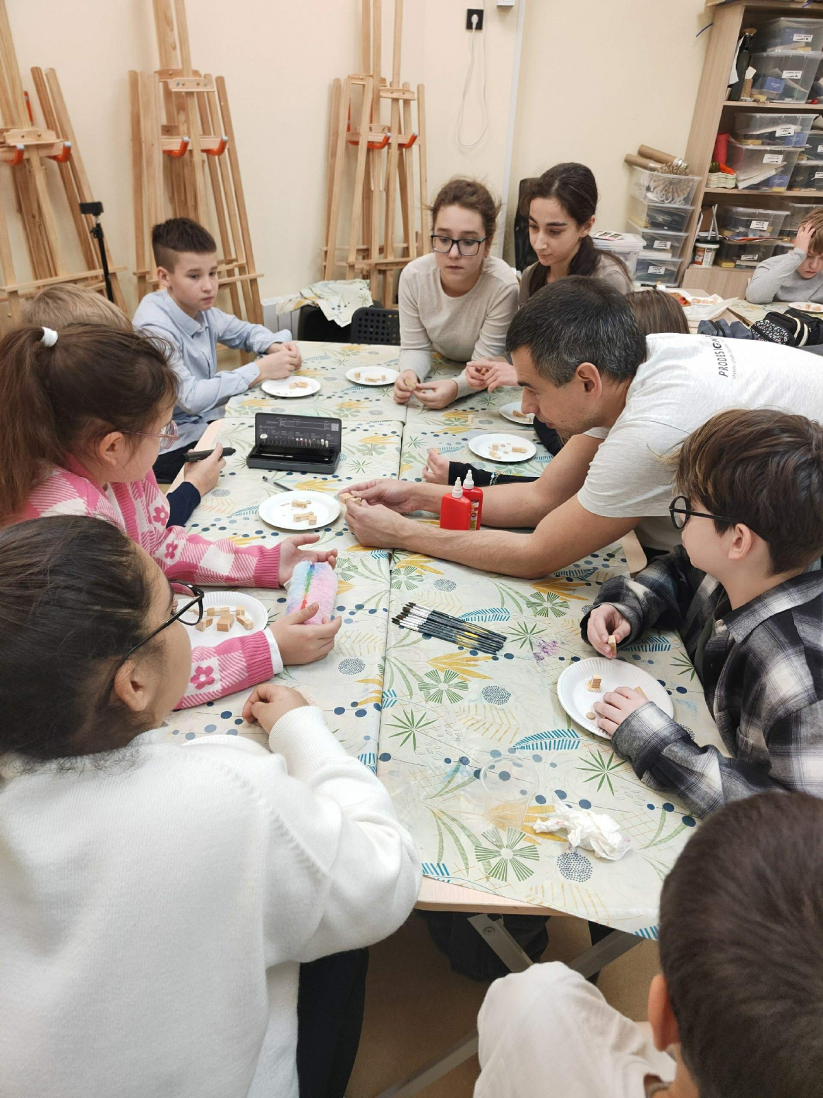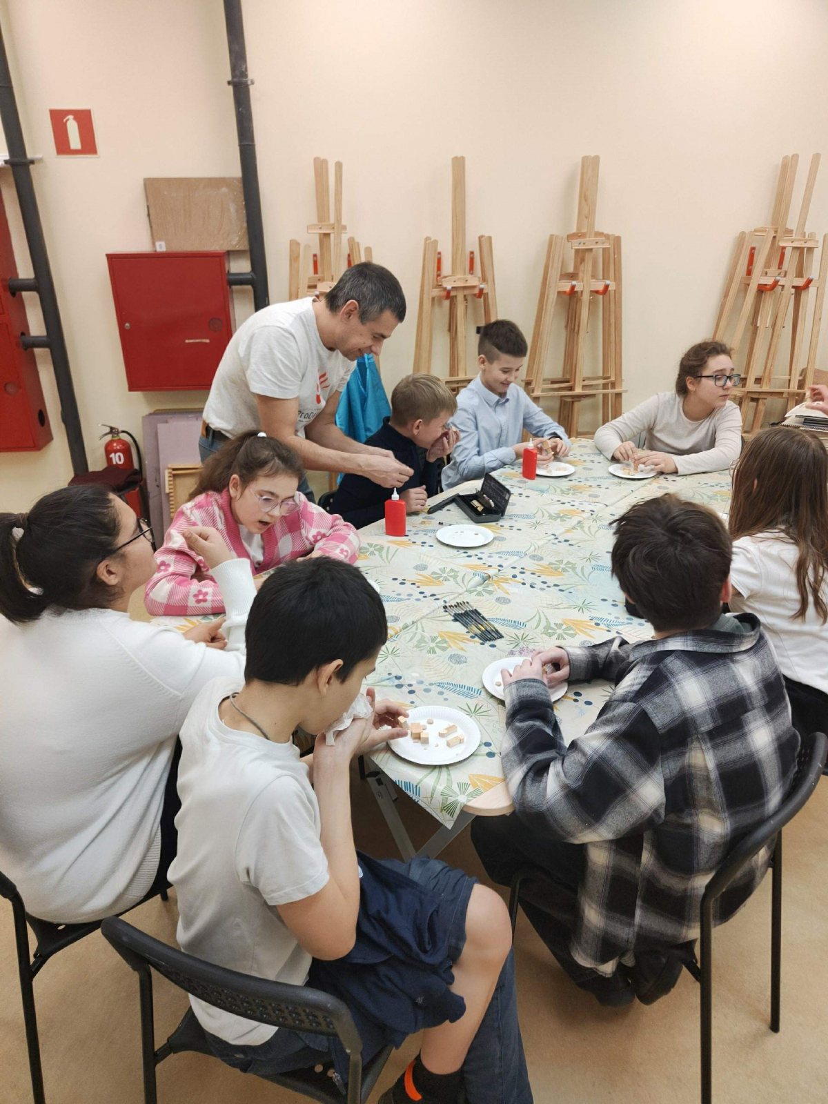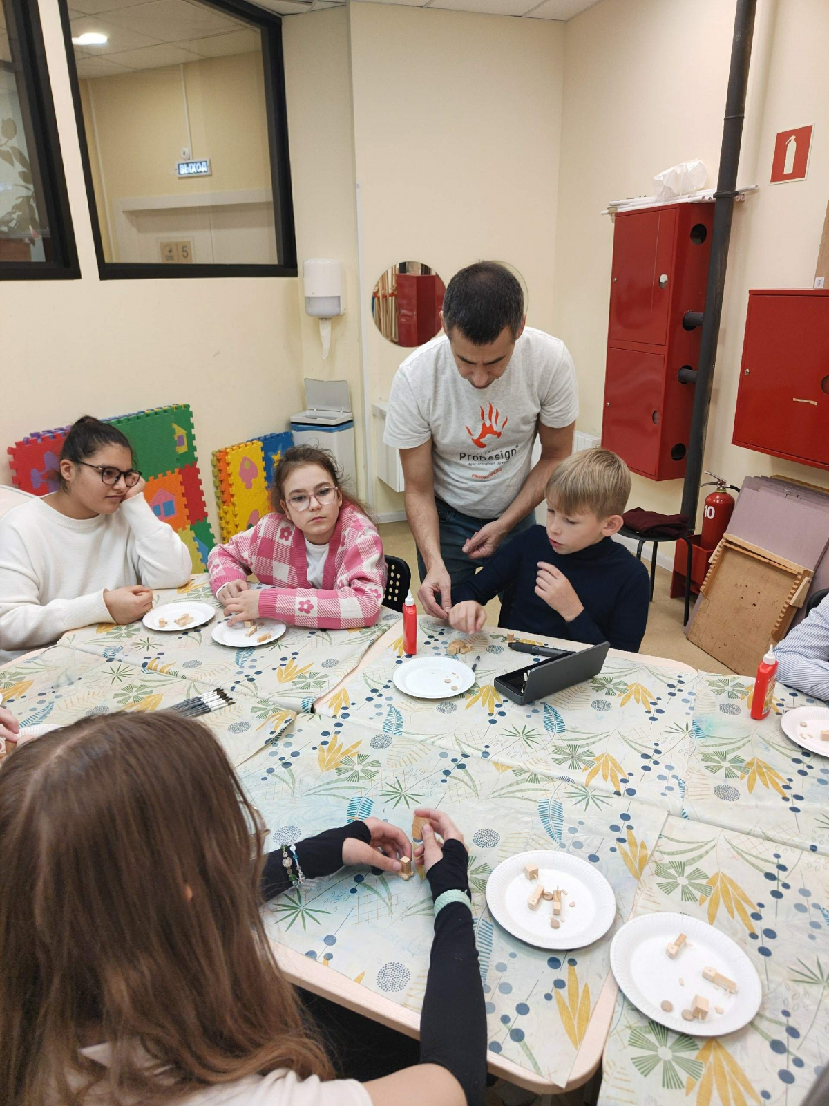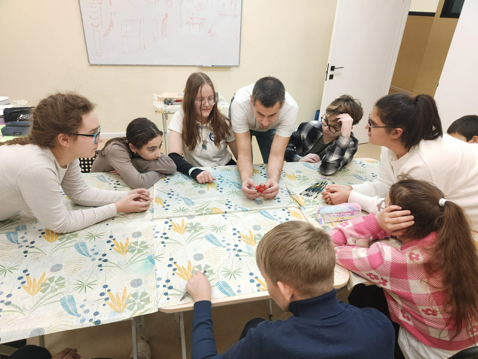 Вот и выдернули меня из берлоги (моего тихого балкончика) в веселую банду детворы, в Центр образования "Учись Легко!" Конструировали и расписывали с ребятами роботов по моему проекту. Заодно провел мини-лекцию о дереве и инструментах, ребята, большие молодцы! — слушали с большим интересом, а уж когда начали мастерить, всё совсем закипело.