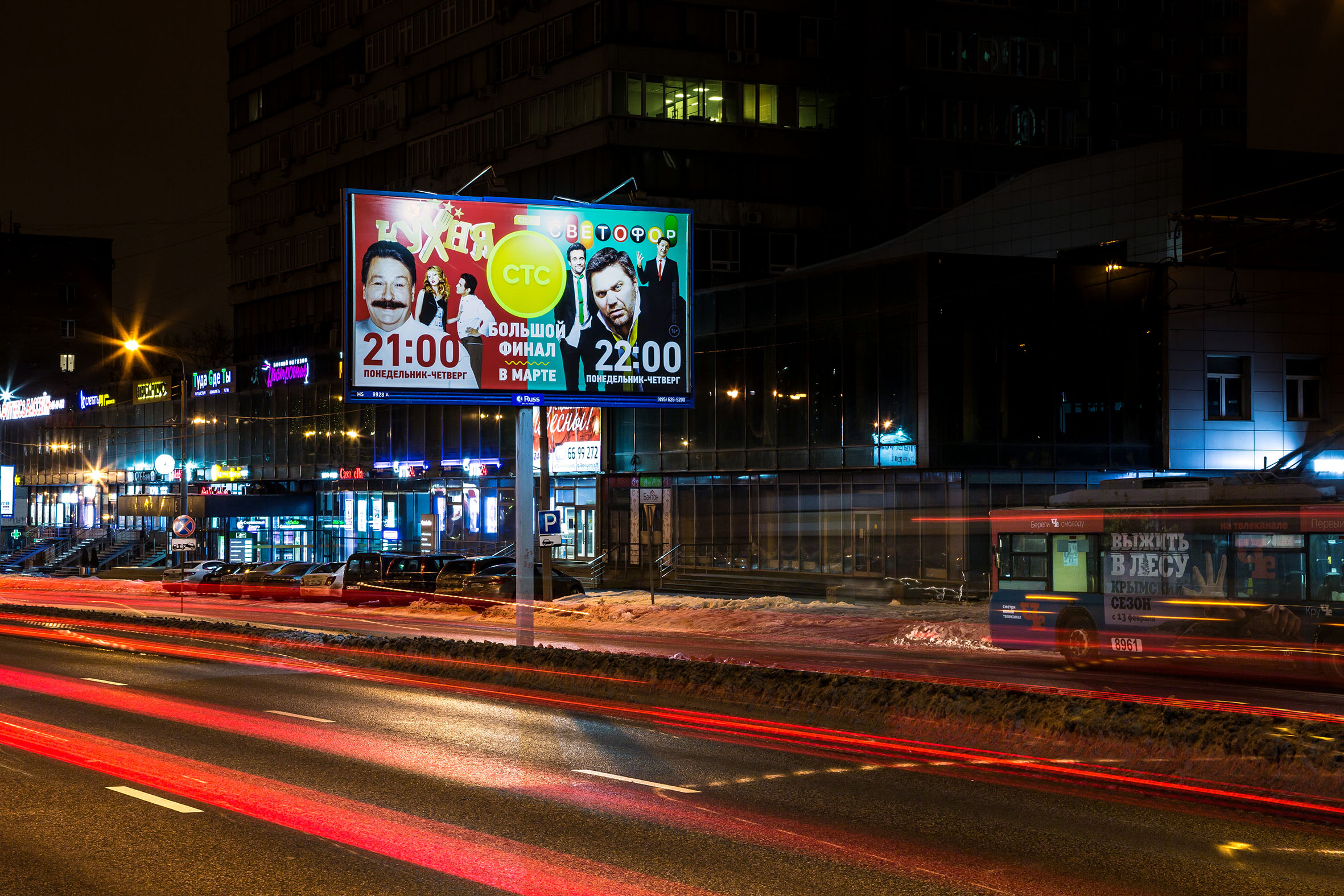 В марте стартовала рекламная кампания, анонсирующая весенние премьеры канала СТС. Размещение анонсов телесериалов «Кухня», «Светофор», «Крыши мира» и «Вечный отпуск» осуществляется по заказу холдинга «СТС Медиа» эксклюзивно на конструкциях оператора Russ Outdoor. Адресная программа проекта включает более 2000 поверхностей в Москве, Санкт-Петербурге и ещё 39 российских городах. В рекламной кампании задействованы конструкции самых разных форматов – билборды, сити-форматы, триптихи на остановках и суперсайты.