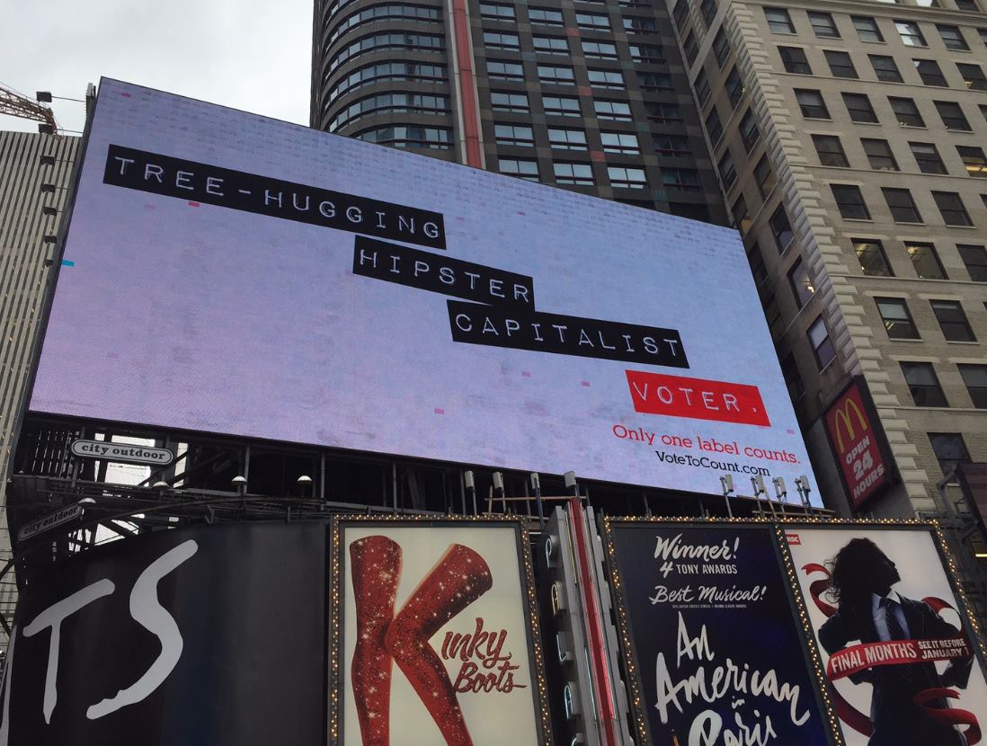 Используя более 125 комбинаций ярлыков, представляющих разнообразие американского электората, кампания напомнила гражданам, что при всей важности других ярлыков, в день выборов важен только один — «избиратель». В рекламе указывалась ссылка на ресурс Vote To Count, где люди могли зарегистрироваться для голосования в родном штате, создать персональный ярлык и поделиться ним в социальных сетях. Более 65% заходов на сайт оказались прямыми.