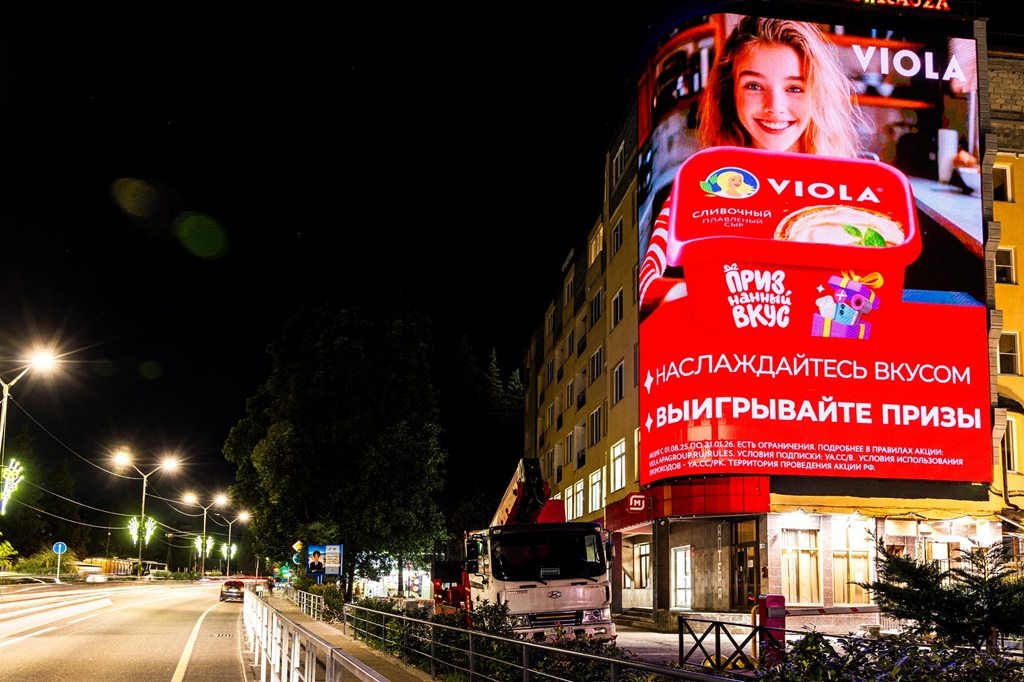 «Экран на здании Villa Rauza формирует премиальный визуальный контакт с туристической аудиторией и местными жителями курорта. Его изогнутая форма и архитектурная интеграция создают эффект WOW, привлекая и удерживая внимание даже в плотном городском потоке», — отмечают в медиагруппе «2ЭТАЖ».