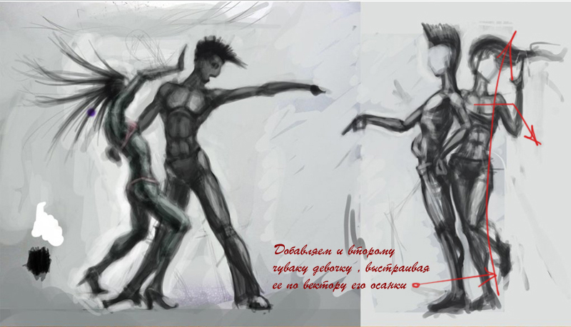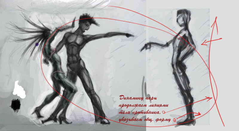 Динамику пары рисуем линиями тел противников и увязываем общую форму