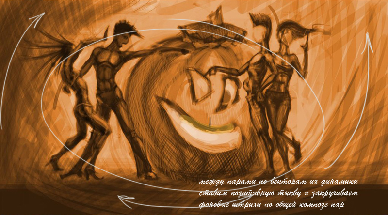 Между парами , по векторам их динамики ставим позитивную тыкву, и закручиваем фонове штрихи по общей композе пар