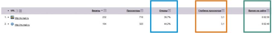 Время: Mail.ru 3,15 мин и Одноклассники 6.38 мин (в среднем по сайту 2.06)