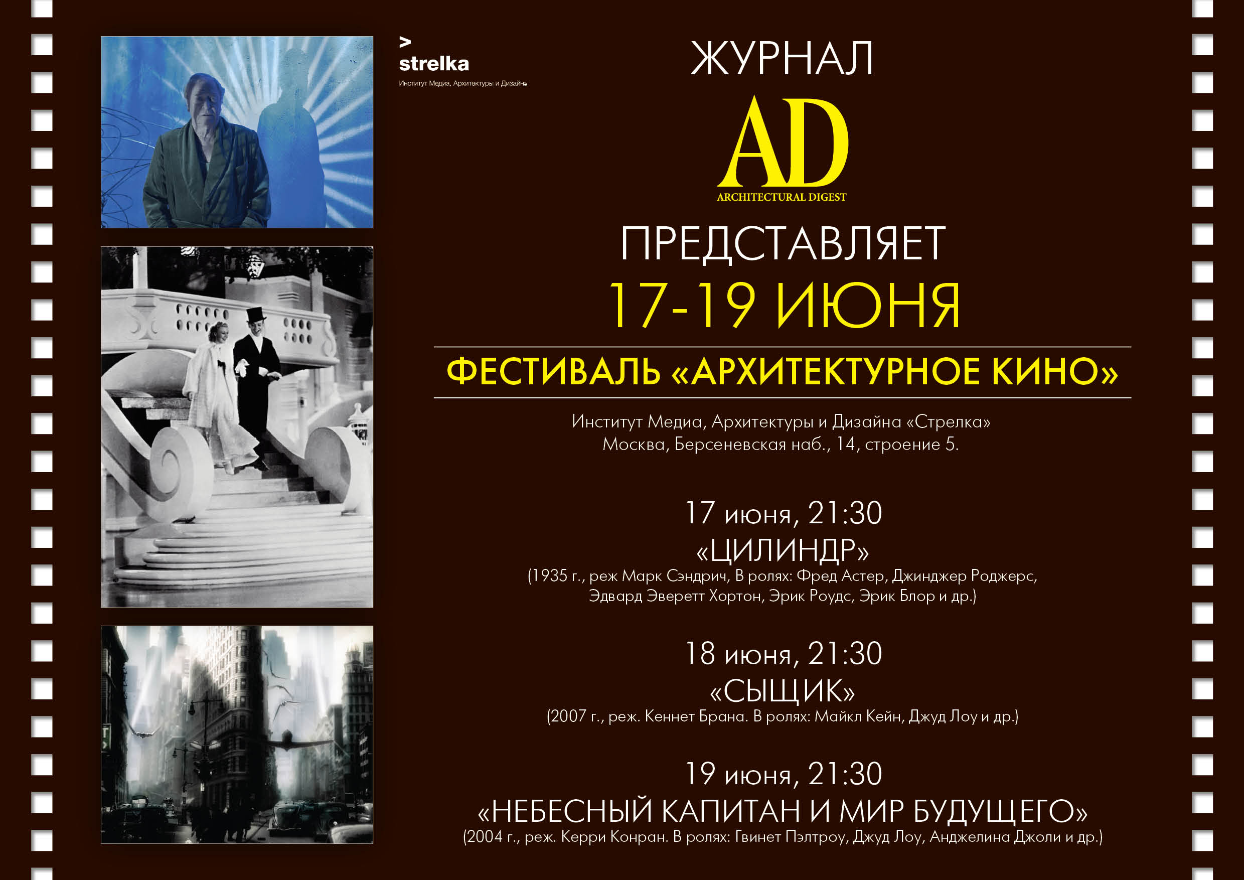 С 17 по 19 июня в рамках летней программы Strelka Institute журнал AD представит трехдневный фестиваль «Архитектурное кино».