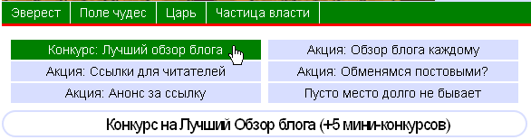 Нравится, что есть блок над статьями со списком конкурсов и акций, но 5 из них ведут на конкретную внутреннюю страницу, а шестая на общий список. Зачем? Ссылка на эту внутреннюю страницу есть в "Рубрике блога" и в облаке тегов. Для тех, кто ещё не понял, что на сайте проводится много акций - они продублированны ещё и в боковой колонке.