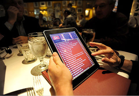 До выхода в свет iPad владельцы ресторанов экспериментировали с различными гаджетами, а с его появлением всё стало гораздо проще. Рестораторы заказывают софт разработчикам iPad-приложений на основе своего ассортимента вин и предлагают посетителям новую услугу – персонального электронного сомелье. С возможностью пролистать на экране iPad изображения вин, ознакомиться с их характеристиками, например, рейтингами от Паркера или Wine Spectator, получить советы по сочетанию с блюдами, предлагаемыми рестораном. И даже отправить свои дегустационные впечатления по сети, скажем, к себе в блог или на форум любителей ресторанной жизни.