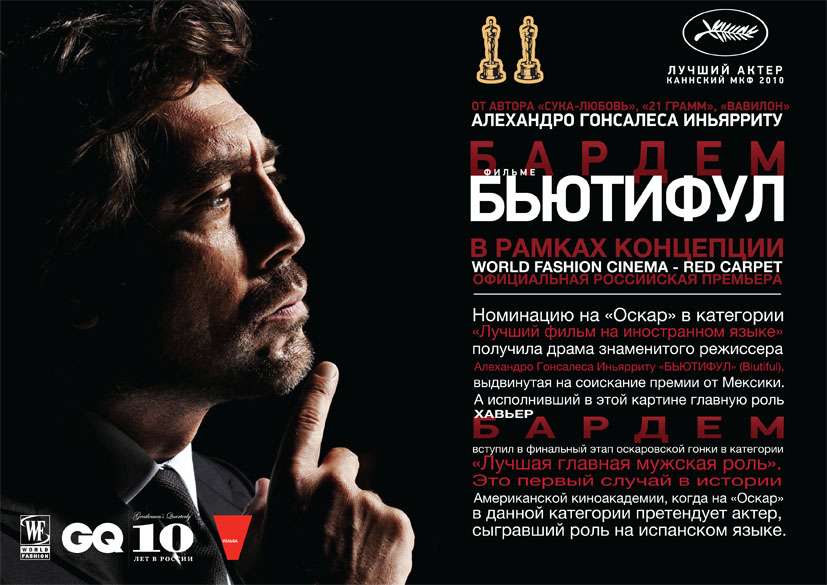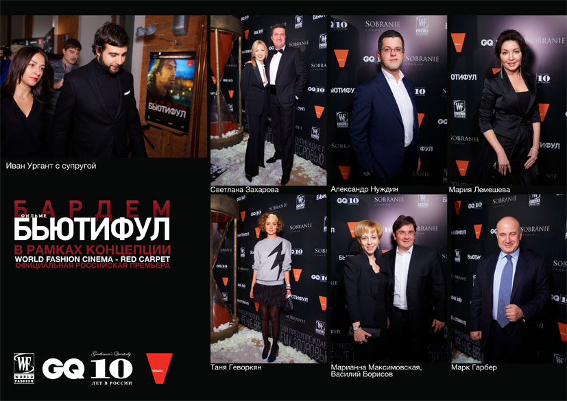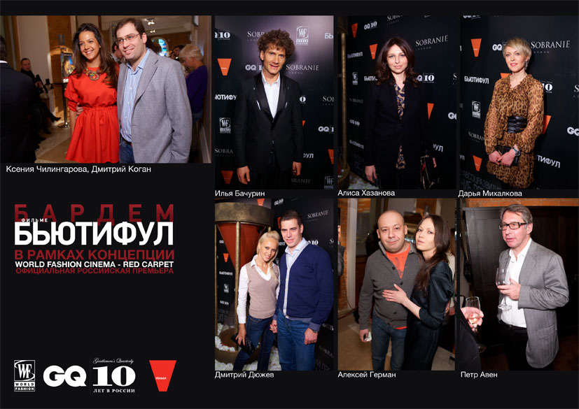Киноторговая компания «Вольга», телеканал WORLD FASHION, Табачный Дом SOBRANIE и журнал GQ 21 февраля 2011 года собрали истинных ценителей кино в кинотеатре «Пионер» на официальную российскую премьеру драмы знаменитого режиссера Алехандро Гонсалеса Иньярриту «БЬЮТИФУЛ» (BIUTIFUL).