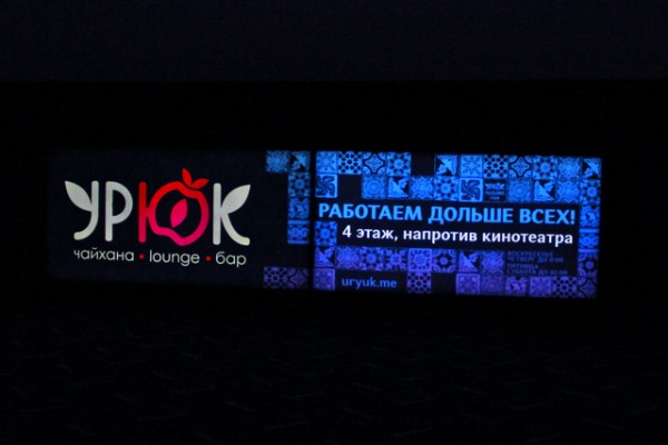 Зрители заходят в зал и видят яркие рекламные лайтбоксы под экраном. Пока не начался сеанс, смотреть больше некуда.