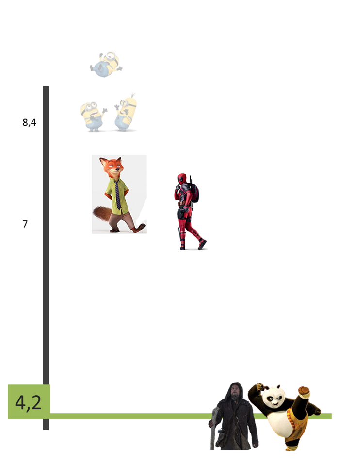 В лучшей десятке 2016 года уже два фильма: "Зверополис" и "Дэдпул" - они прошли отметку 4,2 млн зрителей. На подступах остановились "Кун-фу Панда 3" и "Выживший".