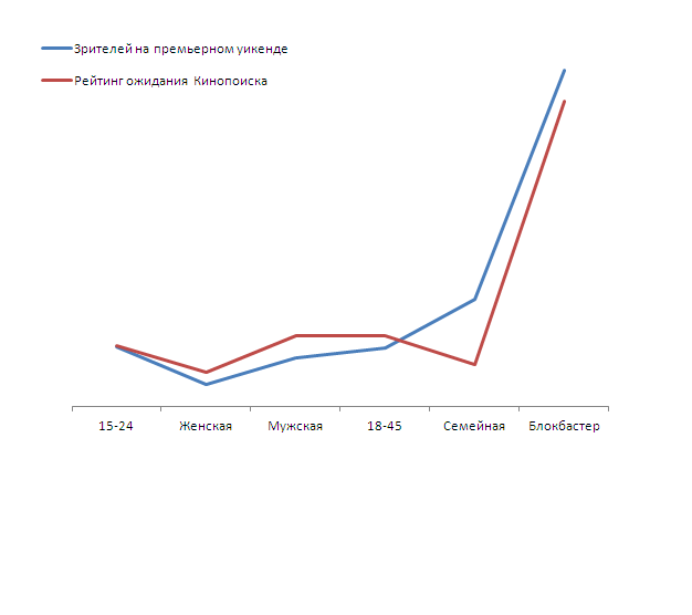 В среднем, на премьерных неделях, они оправдываются для всех целевых аудиторий кроме семейной. На семейных картинах зрителей в два раза больше, чем предсказывают рейтинги ожидания.
