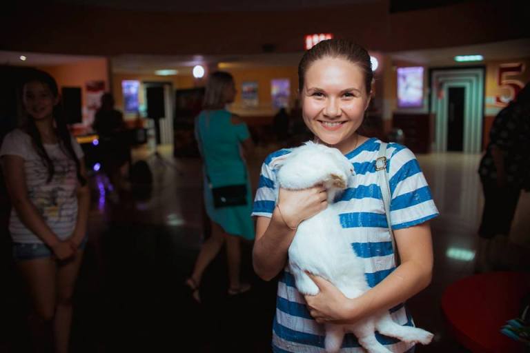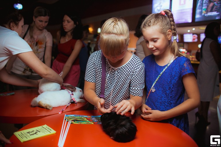 Гуманной зрительской аудитории - настоящий контактный зоопарк. Потрогать котов, собак, морских свинок, енотов и кроликов было возможно в Ярославле в Киномакс-Альтаир.