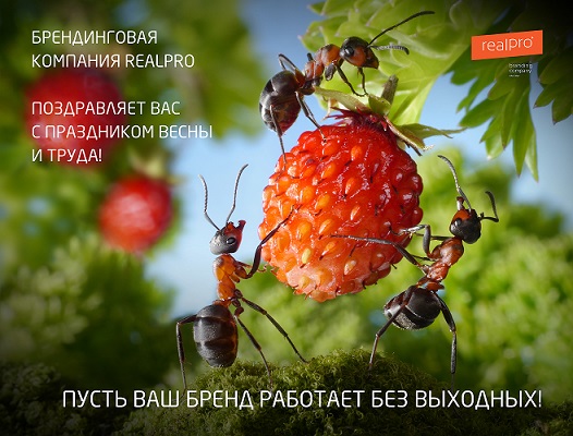 Брендинговая компания REALPRO поздравляет друзей и коллег с праздником весны и труда!