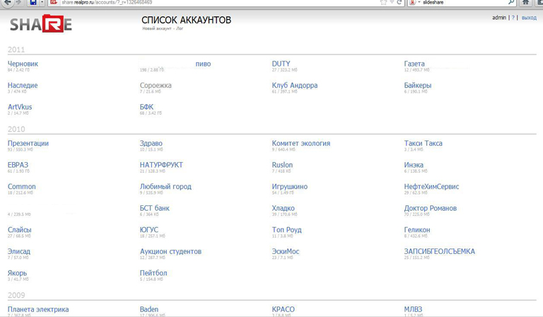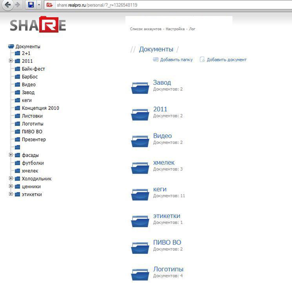 Рис.2 Электронная база REALPRO Share с проектами для клиентов.
