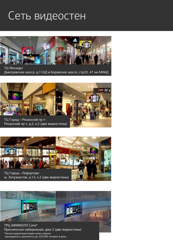 В благодарность за вашу социальную активность каждые 2,5 минуты на протяжении месяца на наших видеостенах в торговых центрах мы будем транслировать ролик с логотипами компаний, принявших участие в акции.