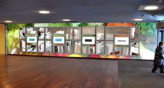 В Швейцарии в одном из крупнейших торговых центров Geneva Mall была установлена стена из 28 экранов. Сегодня размеры моллов огромны - часто видеообъекты просто теряются в их масштабах. Поэтому основная задача, стоявшая перед разработчиками, – это создание видеостены, которая будет притягивать людей к себе. Насколько удачным оказался проект, покажет время. Но можно с уверенностью сказать, что такая стена будет иметь большее влияние, чем 28 экранов отдельно установленные по торговому центру.