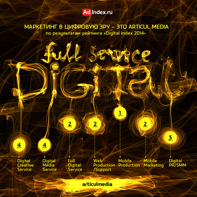 «Мы на высших строчках по всем направлениям. Приятно, что не только в Full Digital Service, но и в других сегментах. Это значит, что качество нашего сервиса „не проседает“, будь то интегрированные кампании, креатив, мобайл, SMM, продакшн, включая мобильный продакшн, где мы первые», — подчеркнула Ольга Куликова, Articul Media CEO.
