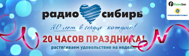 «Радио Сибирь» исполняется 20 лет. Для любой коммерческой радиостанции в России это солидный возраст. Для томского музыкального радио – случай беспрецедентный! Радиостанция вместе с томичами прошла лихие девяностые, пережила надутые двухтысячные: все кризисы, все праздники, все 20 лет. В эфире «Радио Сибирь» устроило шоу в разных эпизодах! Каждый день – новый сюрприз, которые помогли организовать партнеры: генеральный спонсор - компания ForexInn и «Томская энергосбытовая компания».Темы для всех праздников были выбраны, исходя из того, какое оно – «Радио Сибирь»....