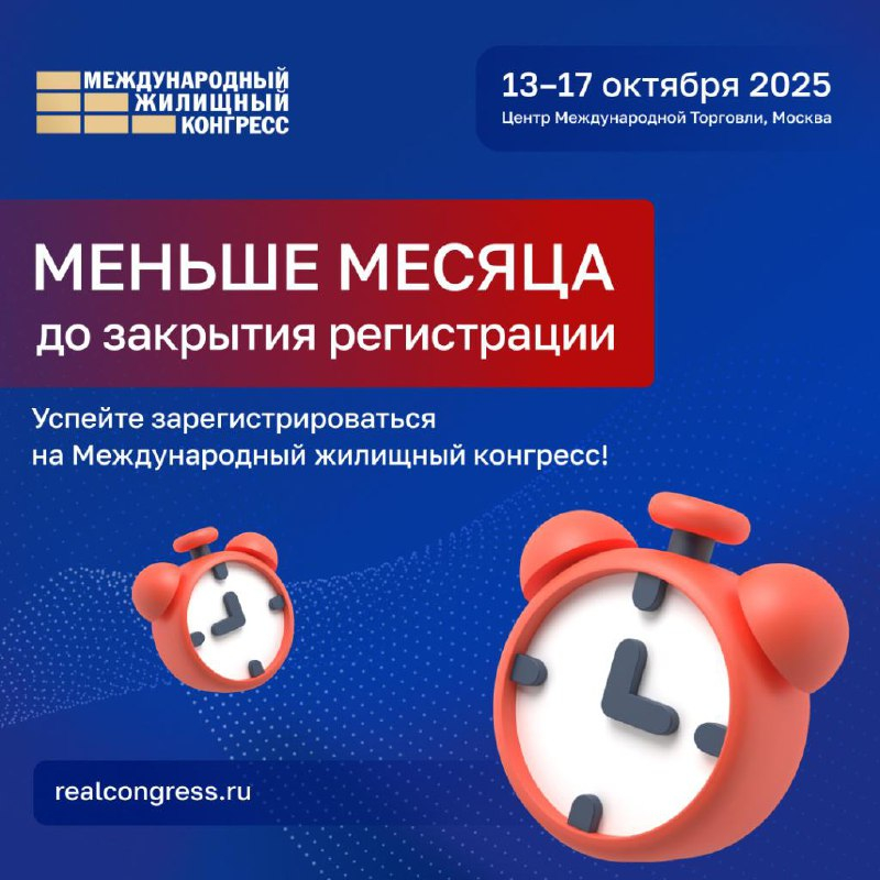 Меньше месяца остается до закрытия регистрации на Международный жилищный конгресс — масштабное деловое событие рынка недвижимости, партнёром которого выступает АБКР. Он пройдёт 13-17 октября, в московском Центре Международной Торговли.