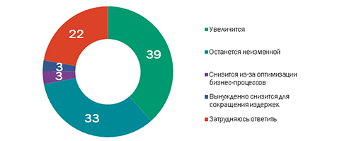 Прогнозы предпринимателей по поводу кадрового состава бизнеса на ближайшие 5 лет оцениваются сдержанно или даже умеренно-позитивно. Так, 39% опрошенных прогнозируют увеличение числа своих работников и 33% - считают, что кадровый состав останется неизменным. Наиболее позитивные кадровые прогнозы характерны для предпринимателей из Екатеринбурга (66%), Новосибирска (53%), Москвы (52%), Омска (52%) и Ижевска (52%). Напротив, пессимистичные оценки преобладают среди опрошенных в Ростове-на-Дону (13%) и Омске (22%).