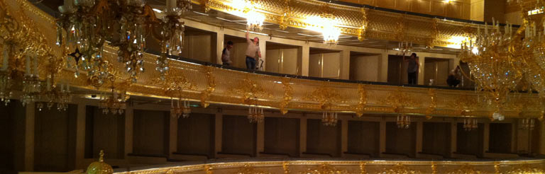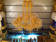 Нам показали, как устроена многоуровневая сцена и оркестровая яма. Под рабочей сценой, между прочим, может поместиться 13-тиэтажный дом! В этом пространстве, высотой около 26 метров, расположился подземный концертный зал, а также 5 платформ, которые могут подниматься до уровня фойе, и таким образом, создавать огромное пространство для торжеств. Вся конструкция весит свыше 20 тонн!