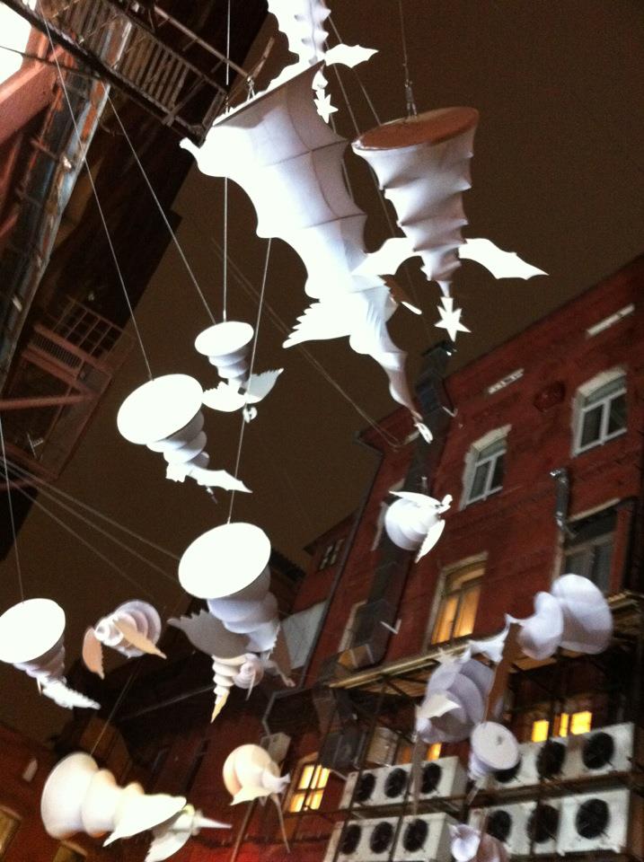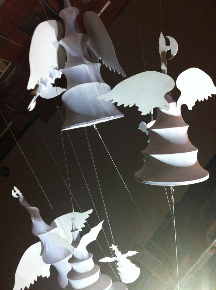 Официальная церемония открытия выставки «Елка как арт-объект» состоялась 15 декабря на Красном Октябре во дворе Шоколадного цеха. Местом проведения организаторы выбрали именно инсталляцию «Возвращение». Участники проекта – дизайнерские студии, известные интернет-порталы и печатные издания, архитектурные бюро и просто свободные художники.