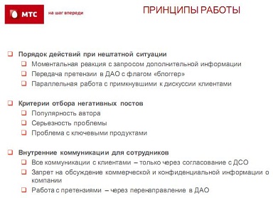 А для онлайн-медиа есть и свои особенности: значимость клиента в медиаполе, уже полученное внимание к своей проблеме, очередность или повторный характер проблемы у одного и того же клиента, сила негативного опыта и т.п. Эти правила могут быть достаточно специфичными — и за ними стоит уже другая технология семантической настройки (поисковых и классификационных алгоритмов). Например, вот как эти правила приоритетного отбора и реагирования реализованы у American Airlines и у МТС Россия.
