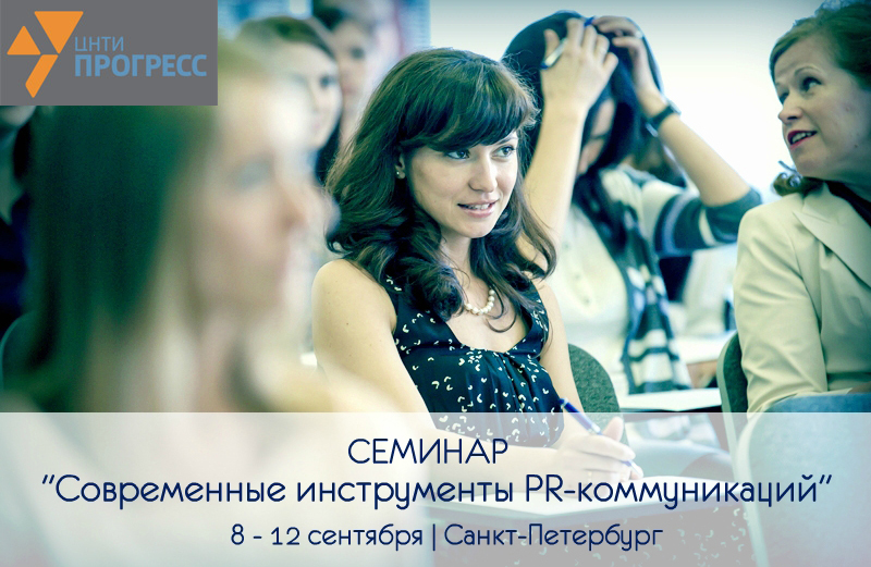 Об этом пойдет речь на семинаре ЦНТИ «Прогресс» «Современные инструменты PR-коммуникаций» (8 – 12 сентября)