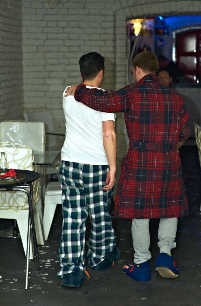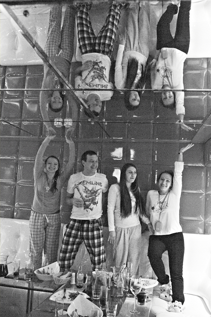 Поздравив своих коллег, компания Viko Pro не забыла и про свой дружный коллектив. Очень хотелось передать по-домашнему теплую и уютную атмосферу новогоднего вечера: посиделки с вином у камина в кругу семьи, домашняя одежда и тапочки. Вылилось это желание в убойную пижамную вечеринку в одном из клубов в Столешниковом переулке. Все приготовление к данному знаменательному событию проходили в режиме строгой секретности. И когда сотрудники в полном составе прибыли в назначенный час в назначенное место - естественно, наши девушки на шпильках и вечерних платьях, мужчины в костюмах - всех ждал новогодний сюрприз: пижамный комплект, большие мягкие тапочки, соска и один горшок на всех. Настроение вечеру задал специальный ди-джей сет от PR - директора и 2-х литровый “уносящий вдаль” коктейль в “Чаше Мира”, которая пошла по кругу, каждый отпивал и говорил теплые слова в канун нового года. Атмосфера была просто потрясающая.. без комментариев.)
