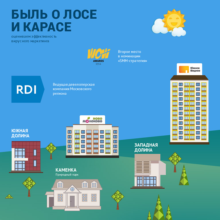 В основе кейса лежит решение задачи по проведению активности в Social media для усиления креативнои? концепции наружнои? рекламы Ново-Молоково. Проект был интегрирован в стратегию присутствия проекта в социальных медиа и реализован агентством ONE TOUCH в короткие сроки. Всего за 4 месяца – с июня по сентябрь 2013 года – агентству удалось создать не только новое впечатление о проекте RDI Ново-Молоково, включающее в себя хорошую узнаваемость, но и вовлечь в активность горожан, что позволило получить огромную лояльность и повысить продажи.