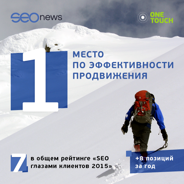 При составлении рейтинга анализируются субъективная и объективная оценки качества услуг. ONE TOUCH занимает первое место в таблице эффективности продвижения рейтинга SEOnews, главным образом за счет сложности указанных клиентами тематик, позиции в выдаче и доли поискового трафика. (по данным SeoRate).