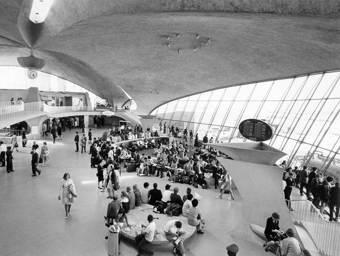 Заброшенный лётный центр компании Trans World Airlines (TWA), спроектированный Ээро Саариненом и построенный в 1962 г. в аэропорте имени Кеннеди (в то время Idlewild Airport), задуман как очередное достижение в элегантности авиаперевозок.