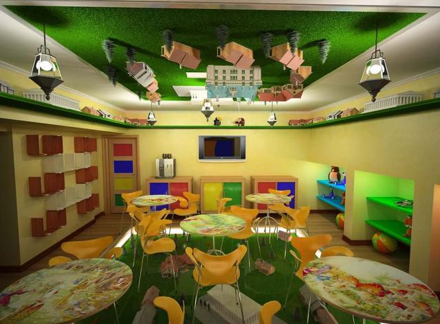 4. Не забудьте и о веселом интерьере. Это не обязательно должны быть какие-то огромные вложения средств. Можно привлечь к украшению интерьеров начинающих дизайнеров, которые пока еще не наработали себе имя, но способны мыслить по-настоящему креативно и творчески, а не шаблонами. Современные краски позволят Вам создать яркие рисунки на стенах, а для росписи тоже можно привлечь молодых художников, предоставив им простор для творчества, конечно, в рамках концепции детского кафе.