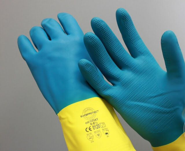 - После каждого использования резиновые перчатки следует тщательно промыть проточной водой для удаления с них остатков загрязнений и химических веществ.