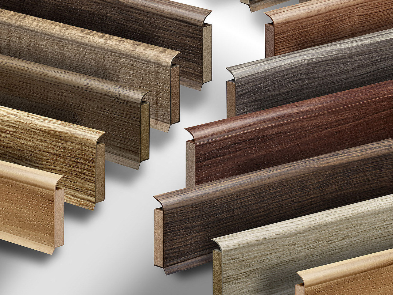 Напольный плинтус делают из разных материалов: пластика, дерева, металла, полиуретана или МДФ. Самый популярный материал — пластик, а самый долговечный — дерево.