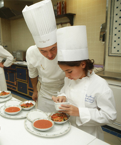 | Кулинарное искусство При виде белоснежных накрахмаленных колпачков умиление сменяется восторгом. Летний лагерь так и сыплет гастрономическими экспериментами: сегодня ароматный гаспачо, завтра классический Кордон блю, а вчера украшение бисквитного торта превратило кулинарный курс в академию художеств. Школьники из разных стран мира готовят национальные блюда для себя и своих друзей: французская выпечка, итальянская паста, азиатская экзотика или добротный стейк на американский манер. Венчает всё это великолепие вишенка в виде мастер-классов по сервировке стола и знание всей гастрономии на английском языке. Летние занятия по кулинарному искусству дадут: