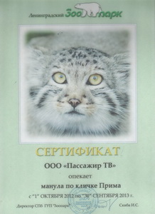 «ПTV /Первое Популярное Телевидение/» усыновило самое известное среди пользователей Интернета животное – манула. С 1 октября манул по кличке Прима находится под опекой медиаканала двух столиц.
