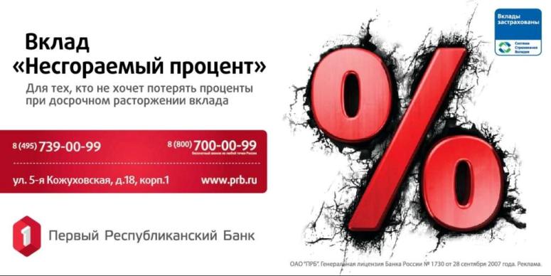 Рекламное агентство Total View запустило первый этап летней рекламной кампании вклада «Несгораемый процент» Первого Республиканского Банка «для тех, кто не хочет потерять проценты при досрочном расторжении вклада».