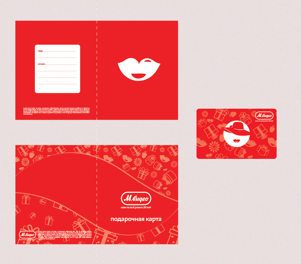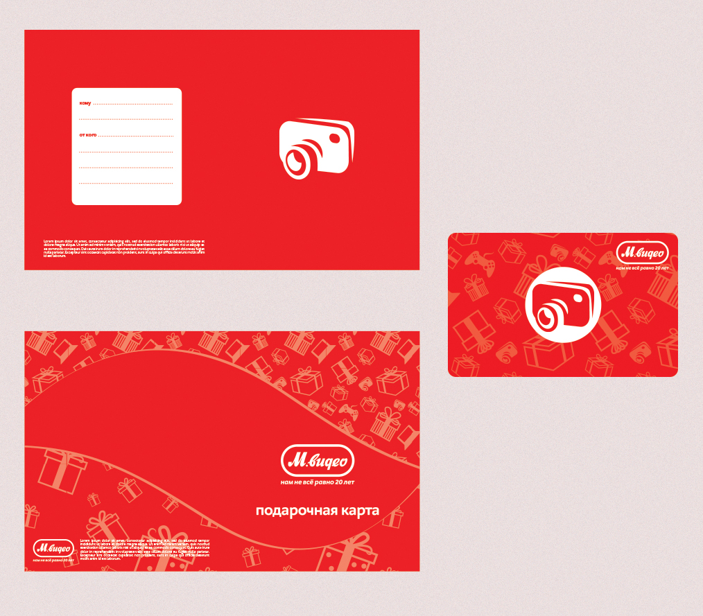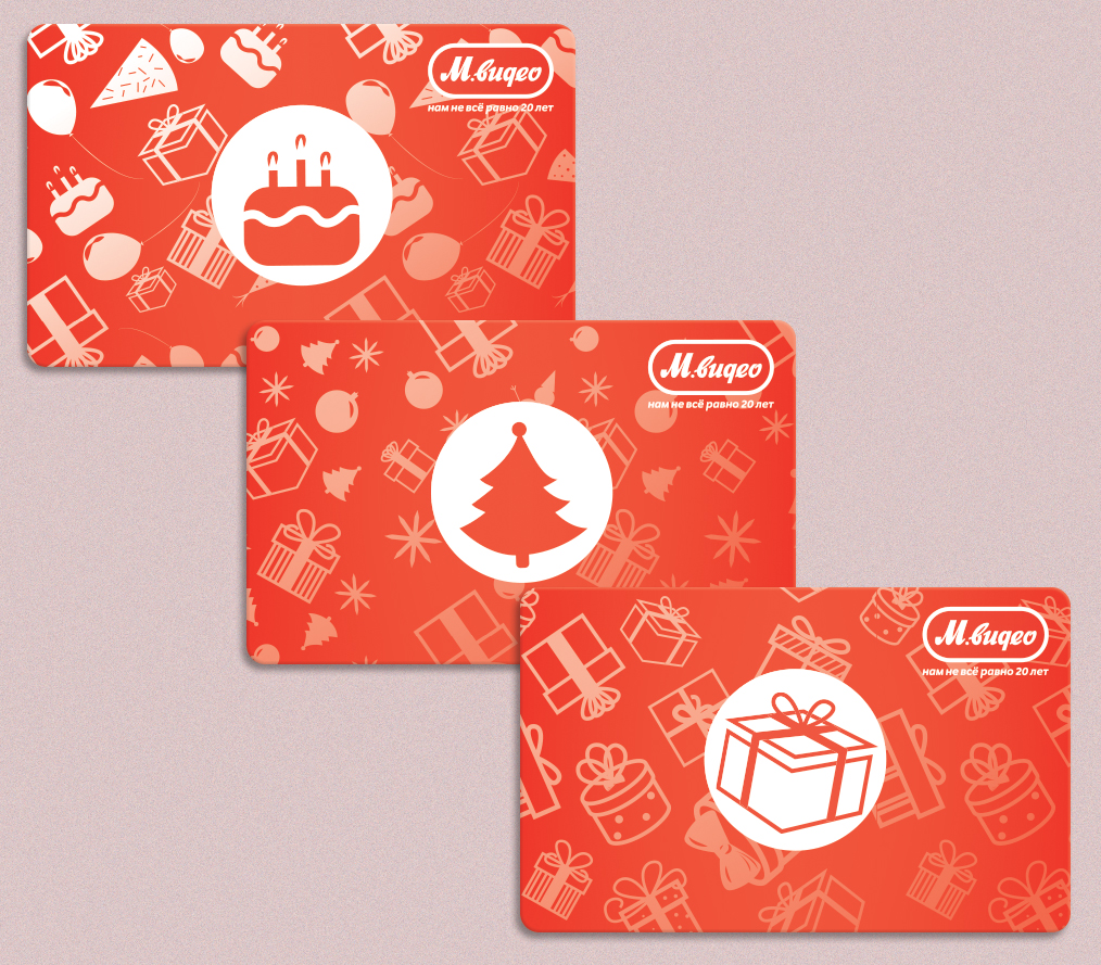 Компания «М.Видео» предлагает Участникам Конкурса разработать концепцию визуального оформления линейки подарочных карт, которые будут использоваться в магазинах торговой сети «М.Видео». Участникам нужно разработать решение, которое будет применимо к разным поводам для подарков и демонстрировать преемственность дизайну и ценностям бренда «М.Видео». Необходимо представить дизайн для семи разных подарочных карт, соответствующих следующим темам: